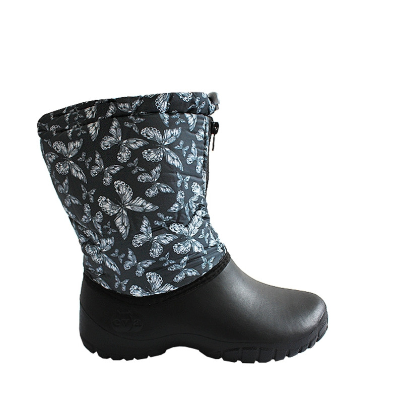 Верх сапога выполнен из водоотталкивающей ткани, которая защищает от снега и слякоти. Внутри утеплитель из нетканного полотна, который обеспечивает тепло и сухость ногам. Нижняя часть сделана из легкого и морозостойкого материала ЭВА. Удобные и практичные, в них Вы будете чувствовать себя под защитой.